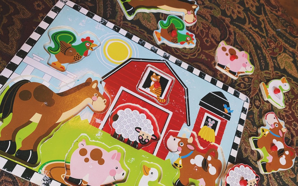 A common theme among children’s toys is farm animals. If you have a child, chances are that you have some farm animal items lying around the house. When a child is reluctant to speak, playing with farm animal toys, puzzles, or books provides a great way to introduce sounds that can later be shaped into words. It really helps if you are willing to be silly. Instead of saying moo in your everyday voice, try changing your tone and stretching out the /oo/ sound, mooooooooooo, and have fun with it. Be animated, crawl on the floor, jump up and down; whatever gets him/her excited to participate and repeat sounds again and again. When we are silly or behave in a way that is unusual, it tends to catch the child’s attention more. You can also include “Old MacDonald Had a Farm” in your play. Matching the animal toy or puzzle piece to the animal making the sounds in the song is a fun way to encourage vocalizations. When a child becomes comfortable saying baa, moo, neigh, and other animal sounds, you have paved the way for those sounds to be used in other words such as mama, you, and play.